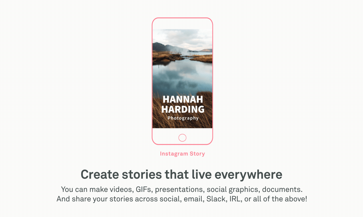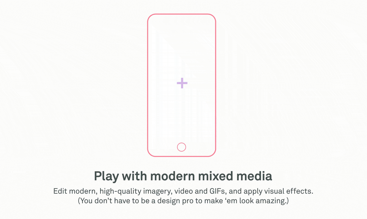 À partir de contenus (image, vidéo, Gif…) importés ou piochés dans les bibliothèques tierces (Unsplash, GIPHY…), les utilisateurs peuvent construire leurs contenus de marque en ajoutant des filtres, du texte…
